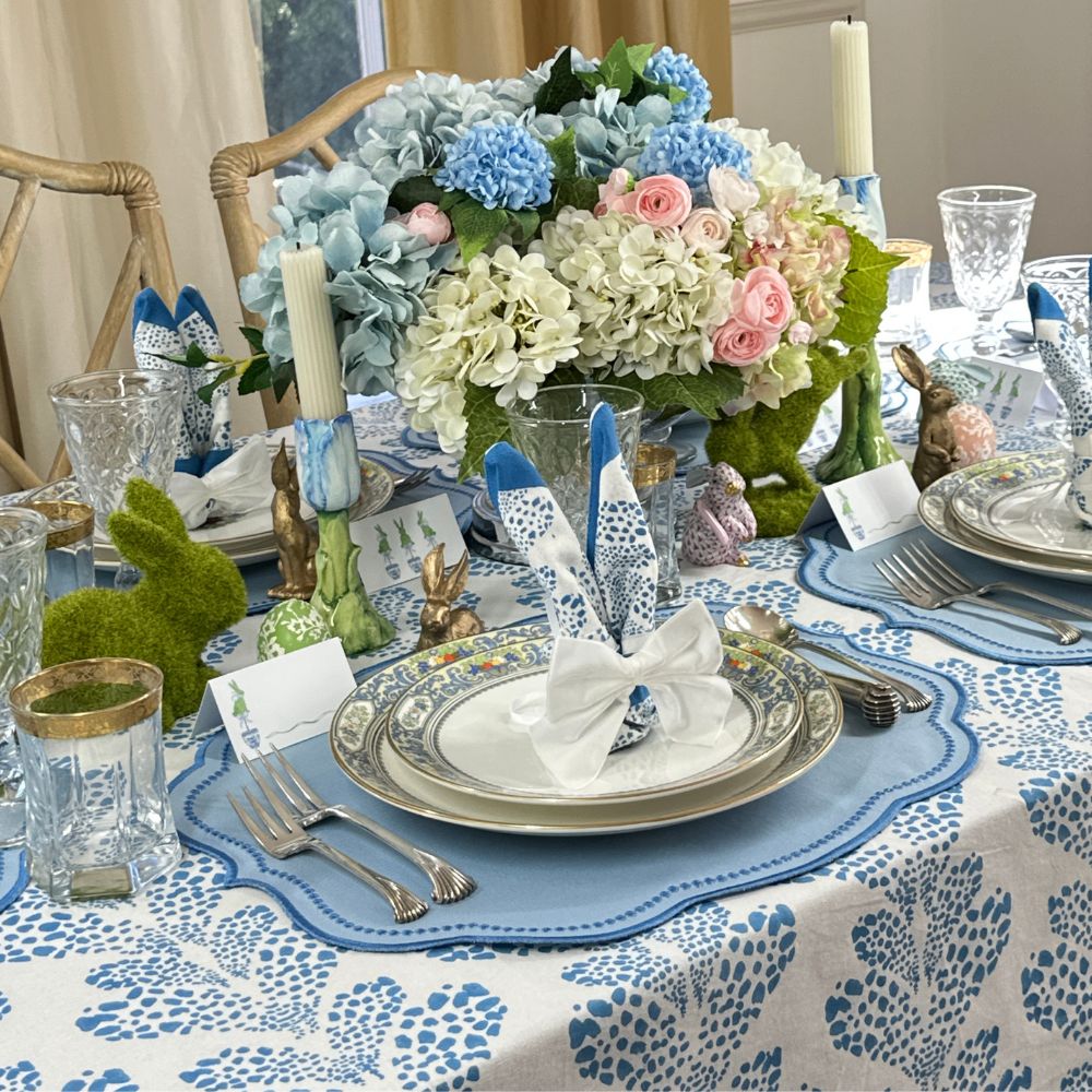 Enjoy our stunning Blue tablecloth from The Kelli collection, created in collaboration with Texas-based textile designer Kristen Leigh.
