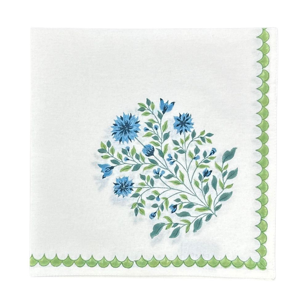 Regular price $58.00Experience the enchanting beauty of a blooming flower with every meal! Each napkin features four exquisite floral motifs and hand block printed scallop border, allowing you to fold and showcase the design in countless elegant ways.