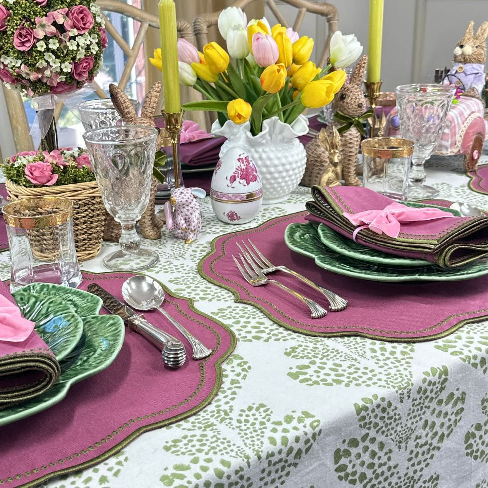 They are the perfect pairing for our Sage Kelli tablecloth. The combination is soft yet striking, elegant yet playful... just what an Easter gathering calls for.