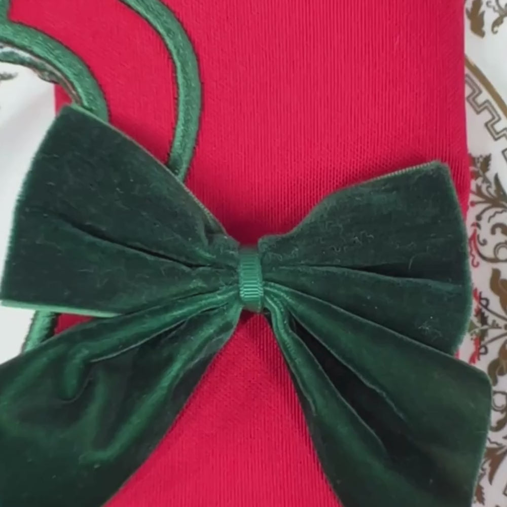 video of the red belle christmas placemat with green embroidery on a green leaves tablescape
